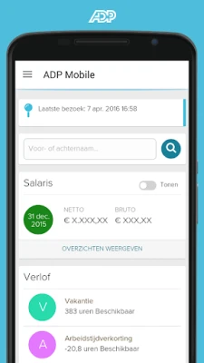 Met ADP Portal heeft u in een oogwenk inzicht in uw financiën; bekijk en bewaar uw salarisoverzichten met een simpele tik. Beheer uw werktijden moeiteloos door in- en uit te klokken direct vanaf uw apparaat, of update uw urenstaten onderweg. Plan uw vrije tijd met vertrouwen door uw verlofsaldi te controleren en nieuwe aanvragen in te dienen, allemaal vanuit één intuïtieve interface. Blijf verbonden met uw team en het laatste bedrijfsnieuws, en neem gemakkelijk contact op met collega's, wat de samenwerking bevordert.