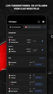 Deze app houdt je volledig bij de les met het laatste voetbalnieuws en actuele sportupdates uit binnen- en buitenland. Duik in een uitgebreide videotheek met hoogtepunten en complete samenvattingen van onder andere de Eredivisie, Keuken Kampioen Divisie, KNVB Beker, Vrouwen Eredivisie en Tweede Divisie. Personaliseer je ervaring door jouw favoriete team te kiezen en ontvang zo relevante informatie die er voor jou toe doet. Het complete scorebord garandeert dat je nooit meer een uitslag mist van de belangrijkste voetbalcompetities.