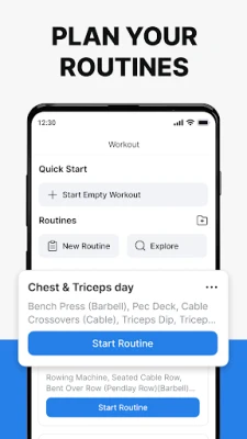 Met Hevy wordt het plannen en loggen van je routines moeiteloos. De geavanceerde routineplanner helpt je bij het creëren van gepersonaliseerde trainingsschema's, terwijl de handige kalender ervoor zorgt dat je altijd op schema blijft. Krijg toegang tot honderden oefeningen, elk voorzien van hoogwaardige video's om je te helpen bij het perfectioneren van je techniek en het vermijden van blessures. Registreer nauwkeurig elke set – of het nu een warmup, dropset, failure set of superset is – en personaliseer automatische rusttimers voor een naadloze sessie. Duik diep in je prestaties met gedetailleerde analyses, inclusief muscle group grafieken, One Rep Max berekeningen en voortgangsoverzichten van volume, beste gewicht en totale herhalingen.