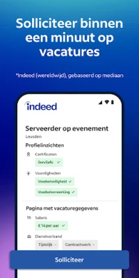 Neem weloverwogen beslissingen met diepgaande bedrijfsinzichten, mede mogelijk gemaakt door honderden miljoenen beoordelingen en recensies van huidige en voormalige werknemers. Krijg bovendien een helder beeld van het salarispotentieel met toegang tot een enorme database van salarisgegevens, doorzoekbaar op functie, bedrijf en locatie, nog voordat u solliciteert. Of u nu op zoek bent naar flexibele opties zoals thuiswerken, freelanceprojecten, parttime functies, of specifieke overheidsbanen, Indeed biedt specifieke zoekmogelijkheden om aan al uw behoeften te voldoen. Indeed is uw partner op elke kruising van uw carrièrepad.