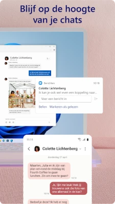 Transformeer de manier waarop u communiceert en werkt door uw Android-ervaring naadloos te integreren met uw Windows-pc. Met Telefoonkoppeling bent u niet langer gebonden aan het kleine scherm van uw telefoon. Beheer inkomende meldingen, voer gesprekken of beantwoord sms-berichten rechtstreeks vanaf uw computer, zodat u uw aandacht kunt richten op één scherm en de productiviteit kunt maximaliseren. Het moeiteloos uitwisselen van uw dierbare foto's tussen apparaten wordt een fluitje van een cent, waarmee de dagen van self-emailing voorgoed voorbij zijn.
