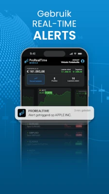 Zet uw marktinzichten direct om in actie. De ProRealTime Mobile app stelt u in staat om naadloos te handelen direct vanuit uw interactieve grafieken, dankzij een orderinterface die specifiek is ontworpen voor mobiele apparaten. Beheer uw live handelsrekening, monitor al uw open posities en plaats nieuwe orders met ongekende snelheid en gebruiksgemak. Mis geen enkel belangrijk moment meer; stel real-time koersalerts in op specifieke prijsniveaus of bij significante veranderingen en ontvang onmiddellijke meldingen zodra deze alerts worden geactiveerd.